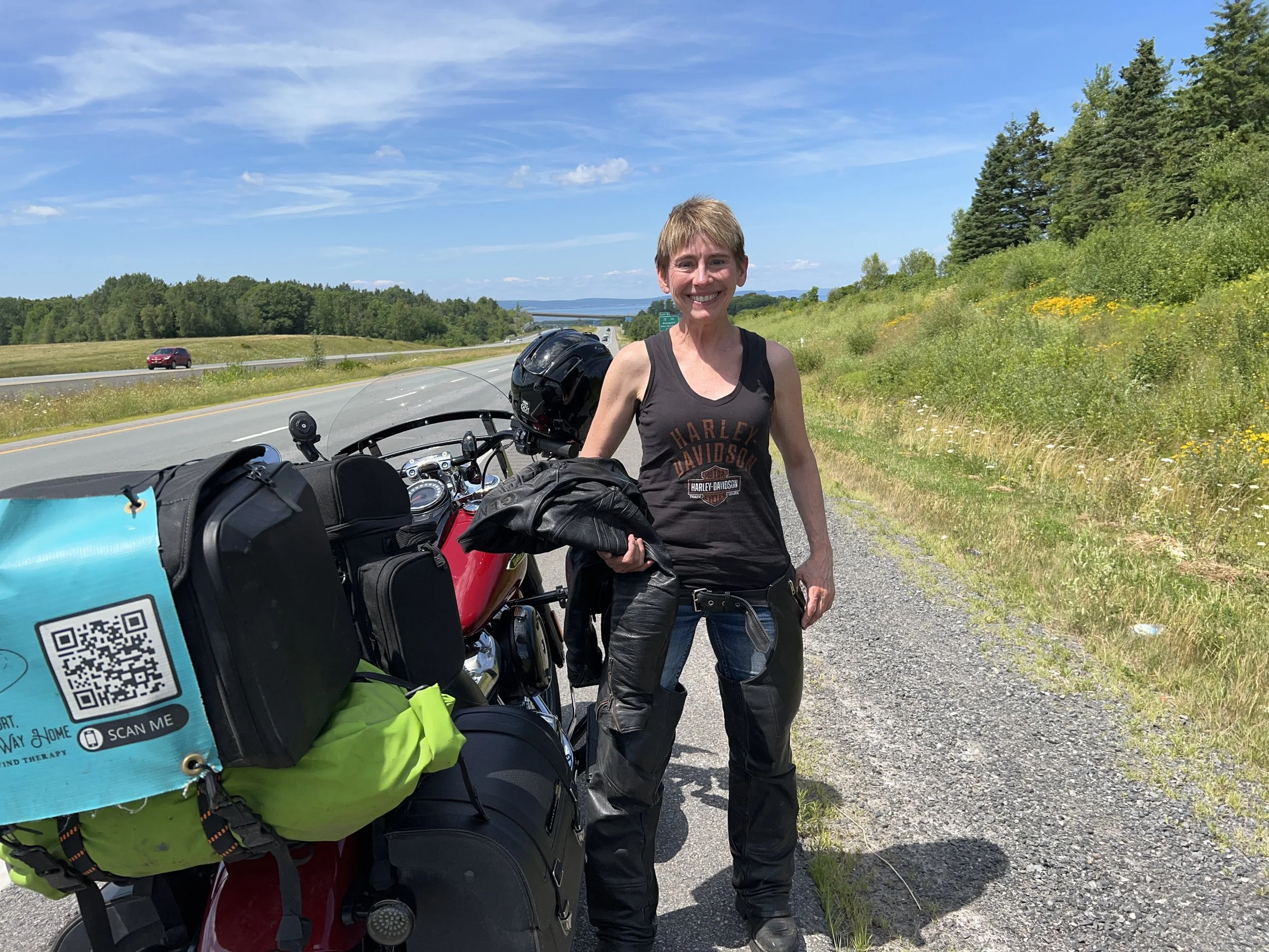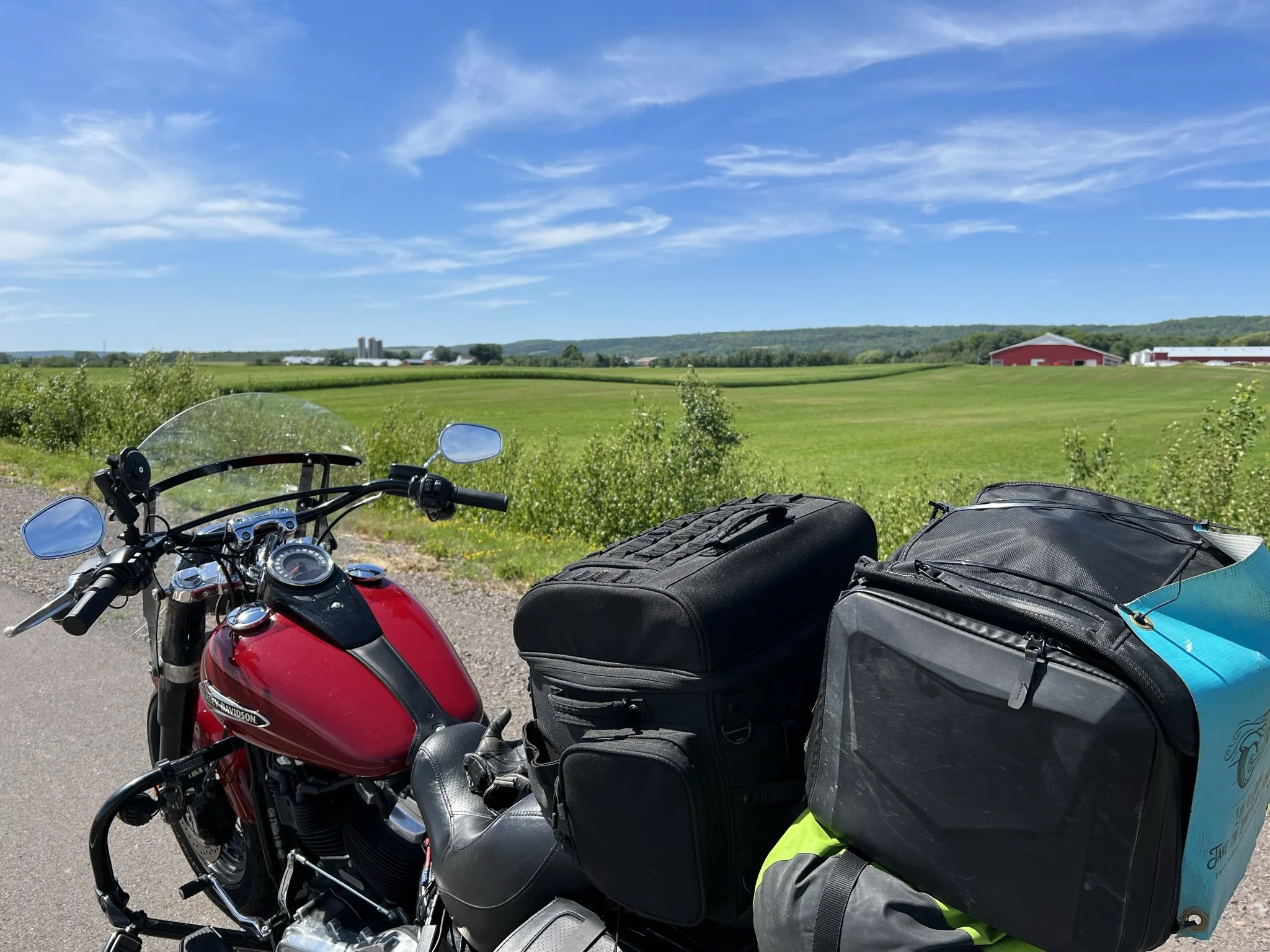 I slept in this morning and then headed south along highway 104 and then highway 102 towards Halifax. The weather was warm, the skies were clear, and there were no crosswinds, making it possible for me to enjoy the rumble of the bike, the texture of the road, and the free time to think thoughts of gratitude.