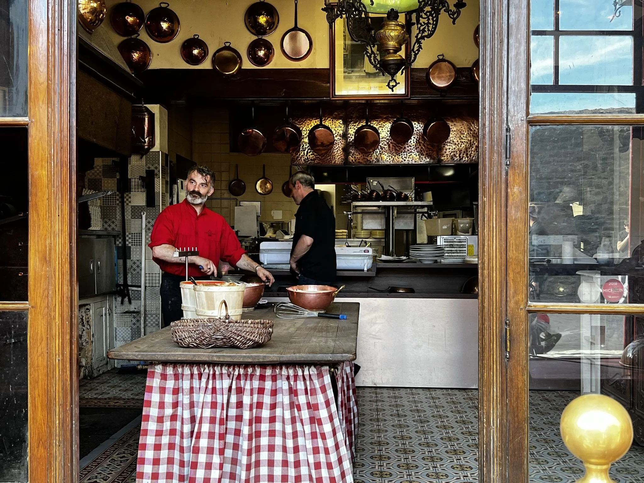 As it was dinner time and I was starving, I decided to treat myself to a famous omelet from LA Mere Poulard before leaving the island. The omelets are made by whisking eggs in hand made copper bowls and then cooking them over an open fire. They are served with shaved truffles and truffle oil and accompanied by a small pan of fried bacon and potatoes.
