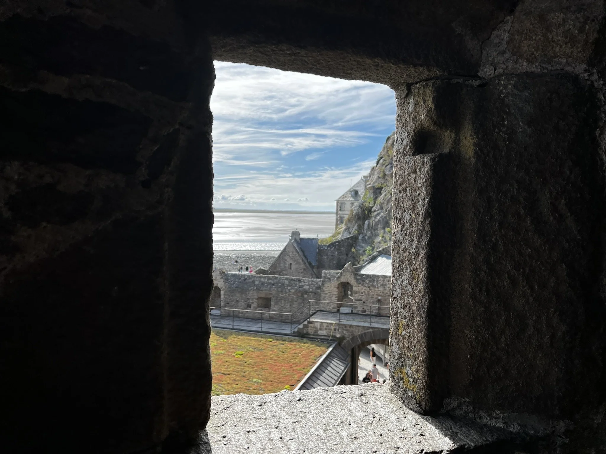 Unauthorized motorists are not allowed to ride to the island itself, so I parked my bike in a designated area and took a short shuttle ride over to visit the village. Once there I wandered the cobblestone streets looking at the little shops and restaurants, climbed up the steps to explore the stone ramparts, and gazed out at the views of the sea and the beach.