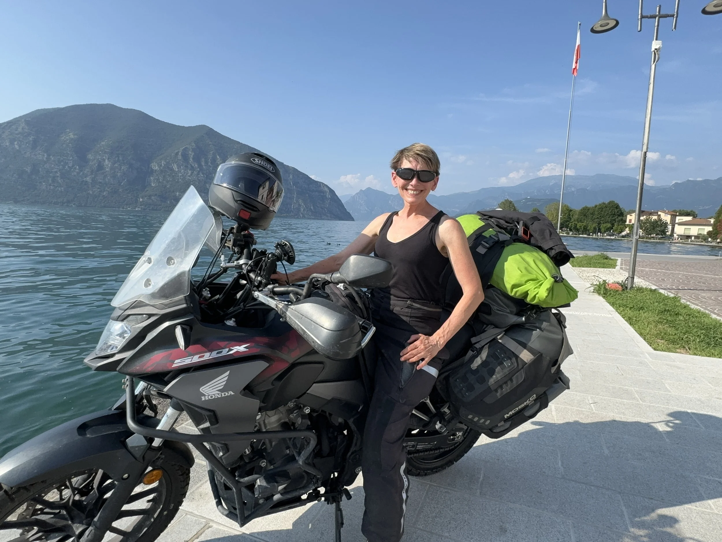 After continuing east past Turin and Milan, I headed north at San Pancrazio to my lodging for the night in a charming little village on the banks of the Lake Iseo. My hotel is perfectly situated right on the water and within walking distance of little shops and restaurants. The cobblestone streets and stucco and stone buildings festooned with geraniums provide a perfect lakeside backdrop. What a fantastic day!