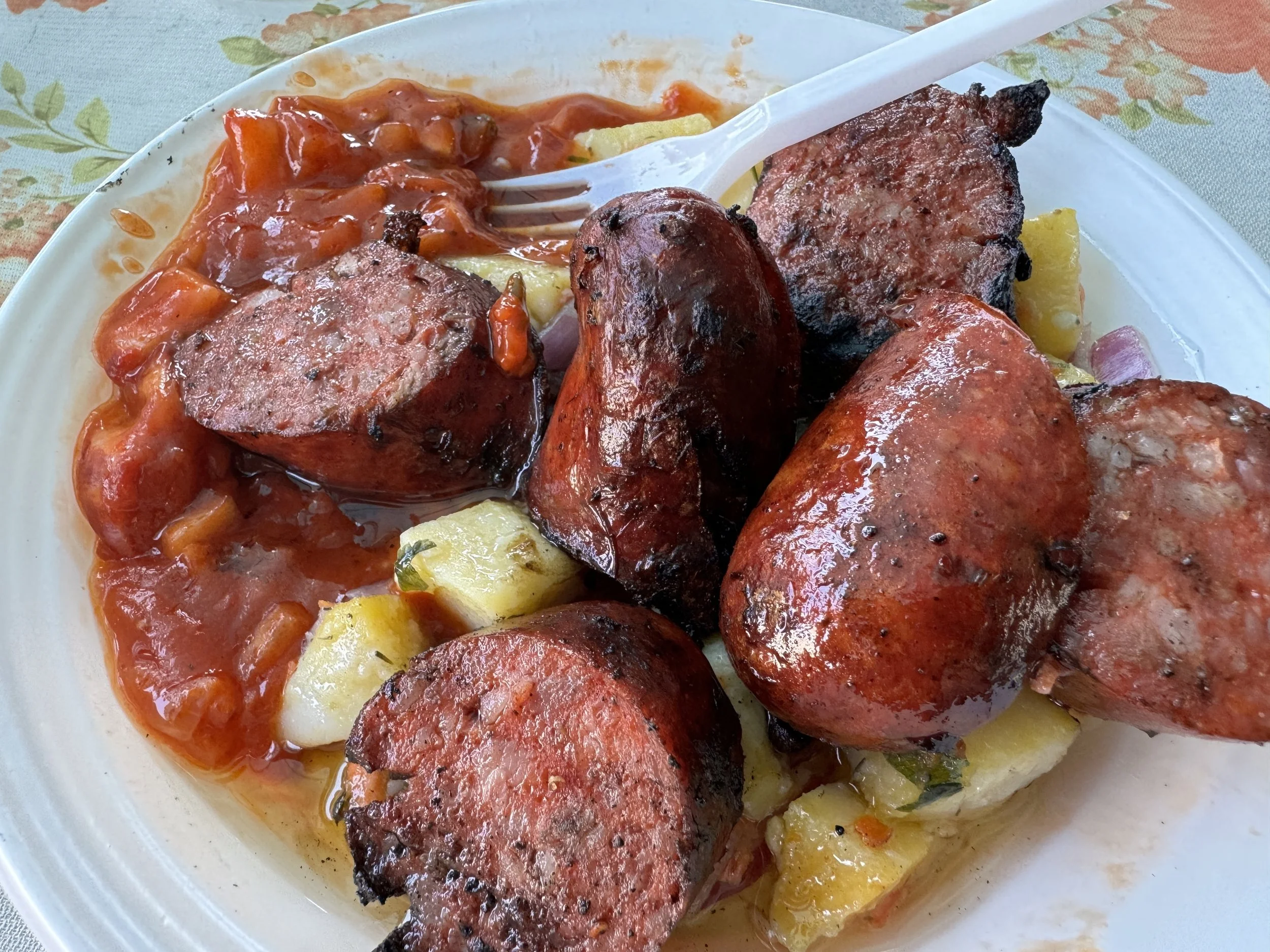While on my way to MotoCamp Bulgaria, I stopped at a roadside stand grilling sausages and offering homemade salads for sides. I explained that I had Euros and the woman cooking the meat piled up a huge plate for me. But when I handed her the Euros, she said she needed change.