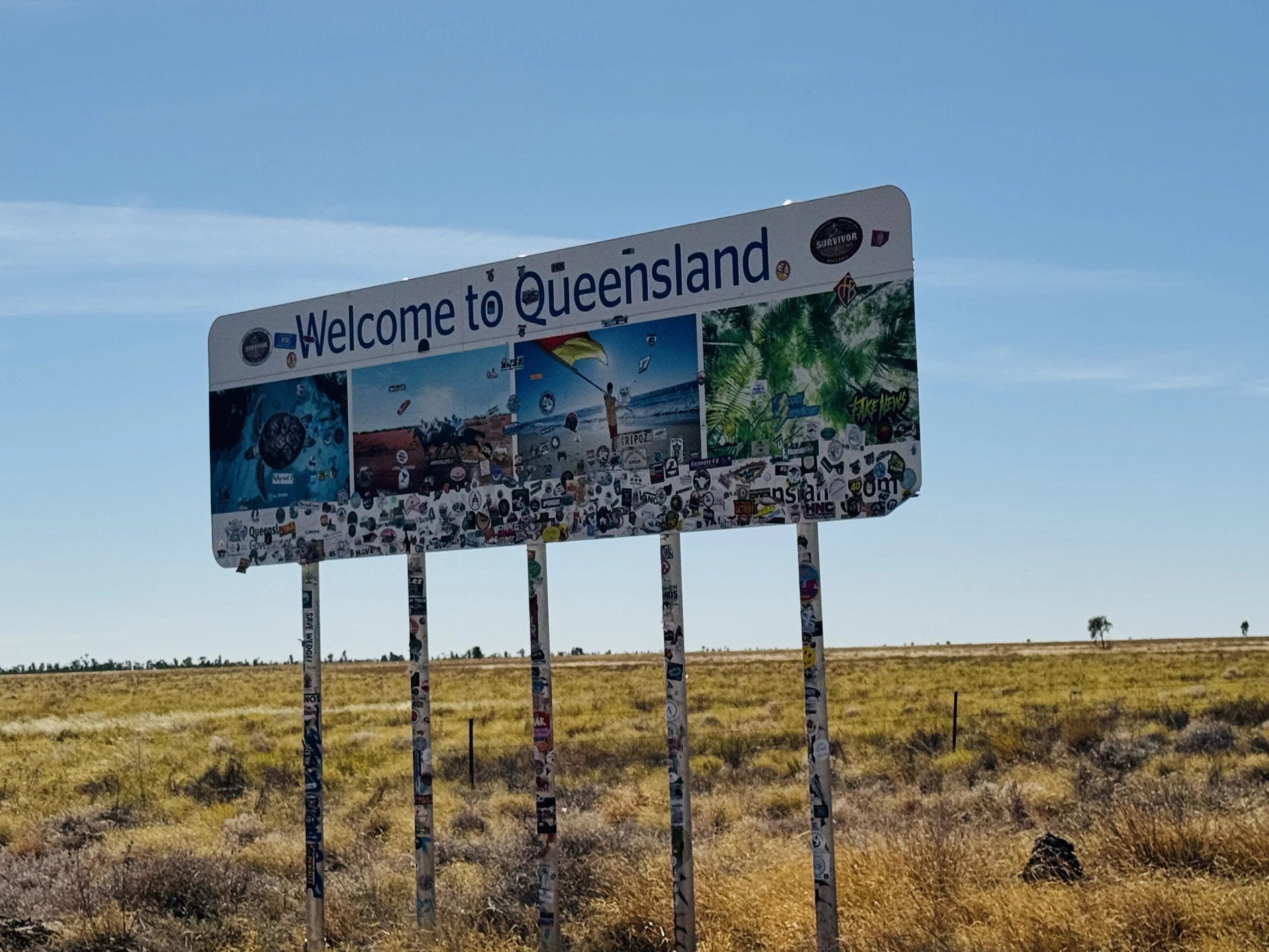 Heading east from the homestead this morning, I passed into the territory of Queensland (my fifth on this trip) and gained another half hour in time. The landscape remained flat with lots of bright yellow and light green grassy fields and smatterings of trees to add a little more pop of color beneath the gorgeous blue skies. What a great day on the bike!