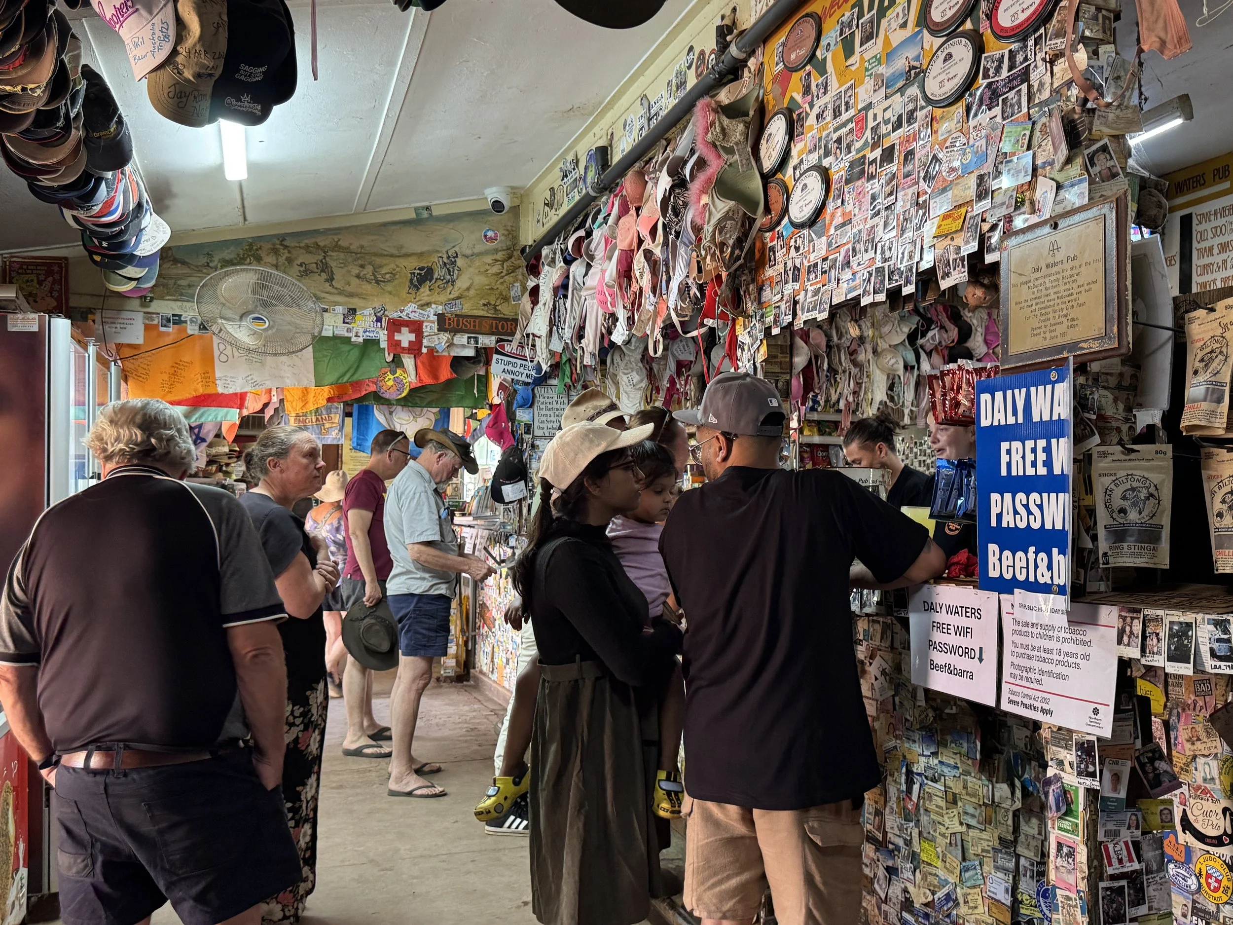 I wasn’t sure what to expect out of the Daly Waters Pub. Having misread it on my map and thinking it was “Daily Waters,” I wondered if there was a Christian connection tied to the concept of daily bread. If the slew of discarded bras hanging above the cash registers were any indication, I was pretty far off the mark. The unique watering hole is chock full of character and defies any typical definition.
