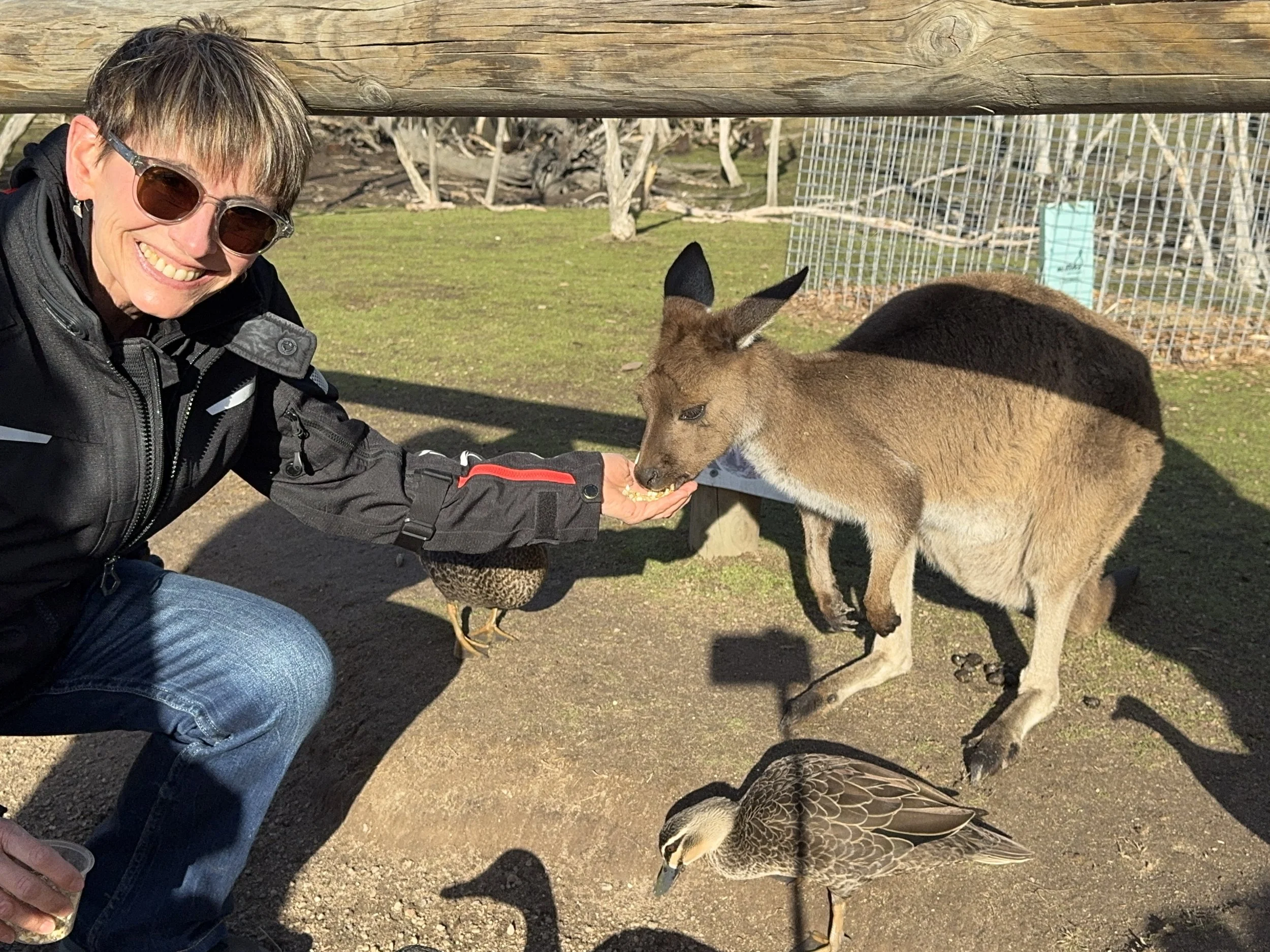 The back of the sanctuary included a Kangaroo and Wallaby rest area where visitors were encouraged to feed the macropods food supplied by the sanctuary. They had their own fenced off area with which to retreat from the tourists but were free to wander among us in search of food. What a treat it was to interact with these gentle, furry creatures.