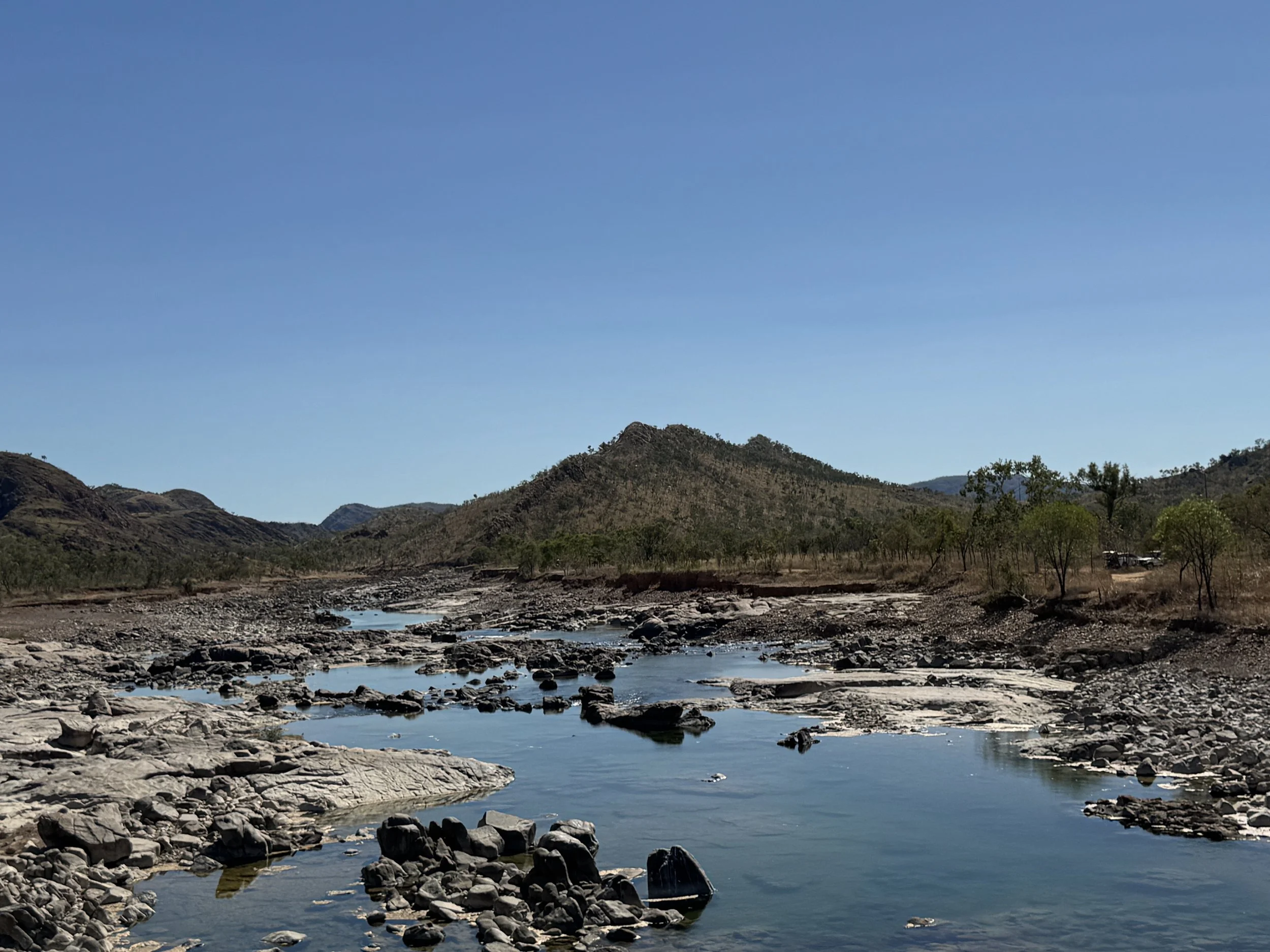 Waking up early to beat the heat, I headed north to Kununurra and then east to the Lake Argyle turnoff, making my way south along the access road past beautiful purple and yellow blooming trees and a variety of tributaries.