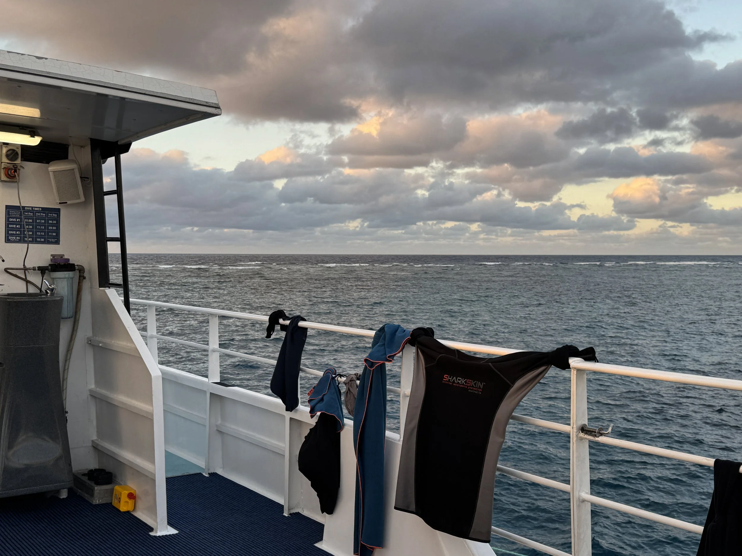 The staff on hand worked tirelessly throughout our journey cleaning common areas, giving us updates on the reef we would be visiting, checking our air levels before each dive, filling up the dive cylinders, leading dives, and confirming that all divers had returned to the ship.