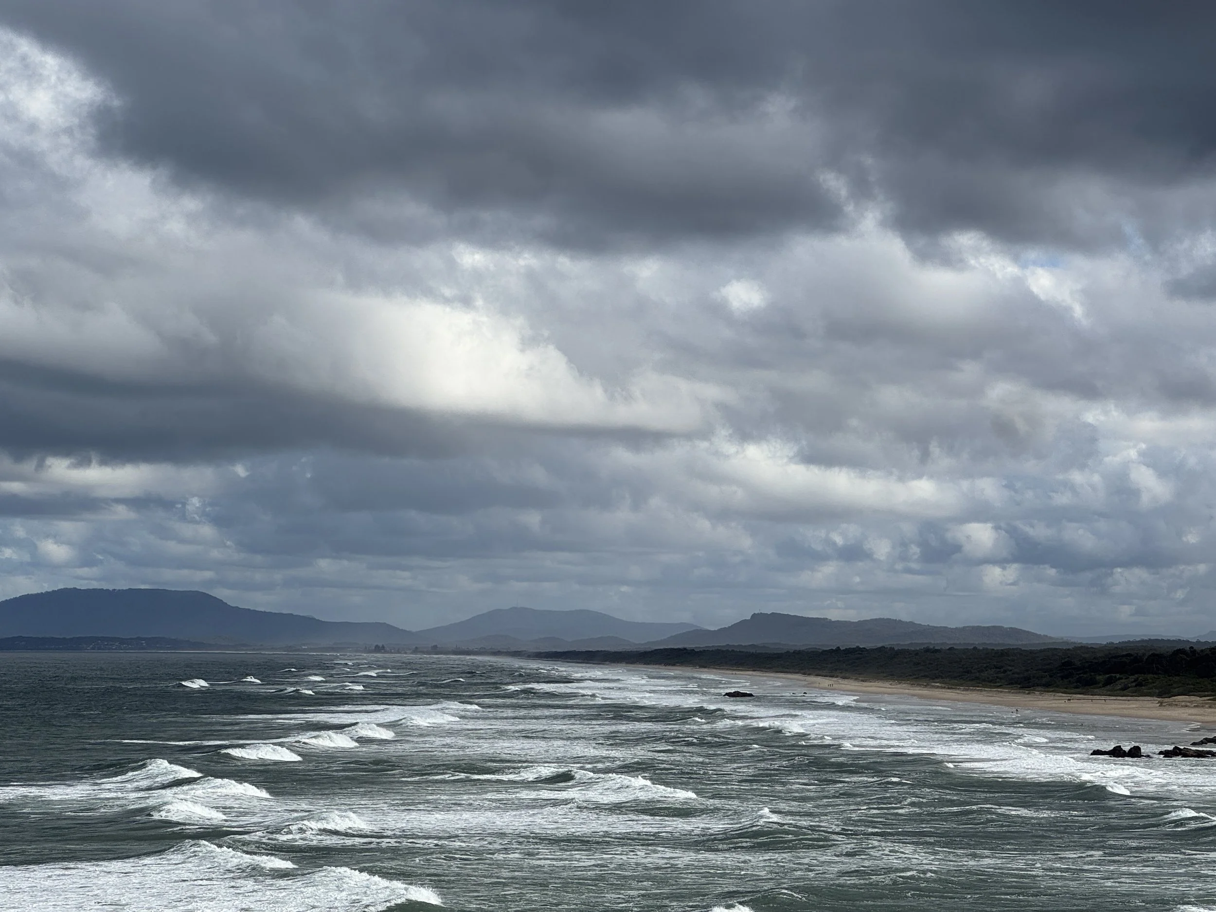 Breathing in the wet, cool, salty sea air, I reflected on how magnificent it is that one country can have so many diverse landscapes and climates even at the same time of year. Leaving Darwin with its arid landscape, trees blackened by wildfires, and temperatures reaching 90 just a few weeks ago, I have gradually adjusted my gear to keep comfortable as temperatures have dropped, humidity risen, and rain become more prevalent.