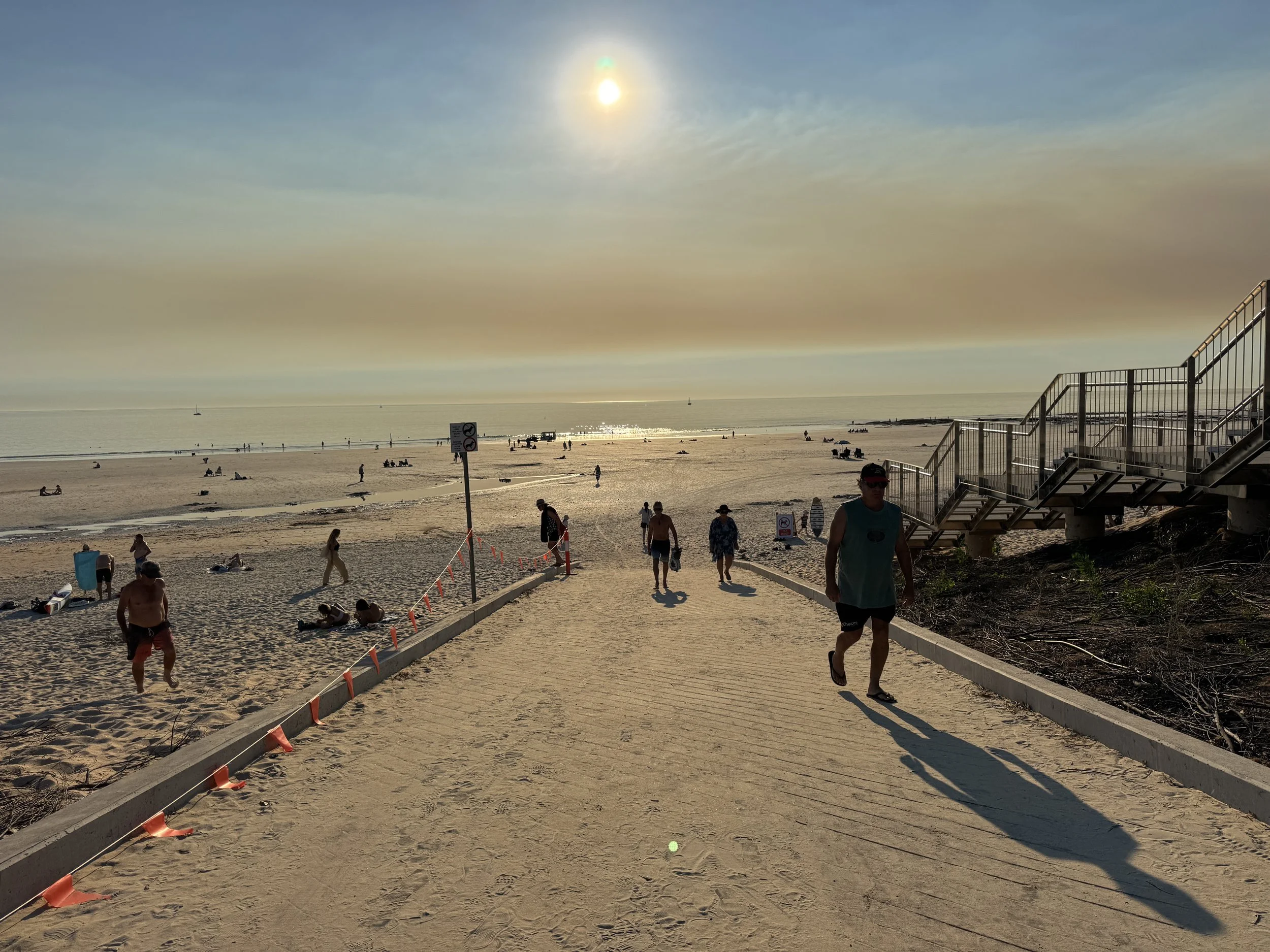 If you look closely at the picture of the beach walkway here, you can see pedestrians coming up the incline by walking on their left. Another who has just gotten to the bottom of the ramp is exiting also on the left.