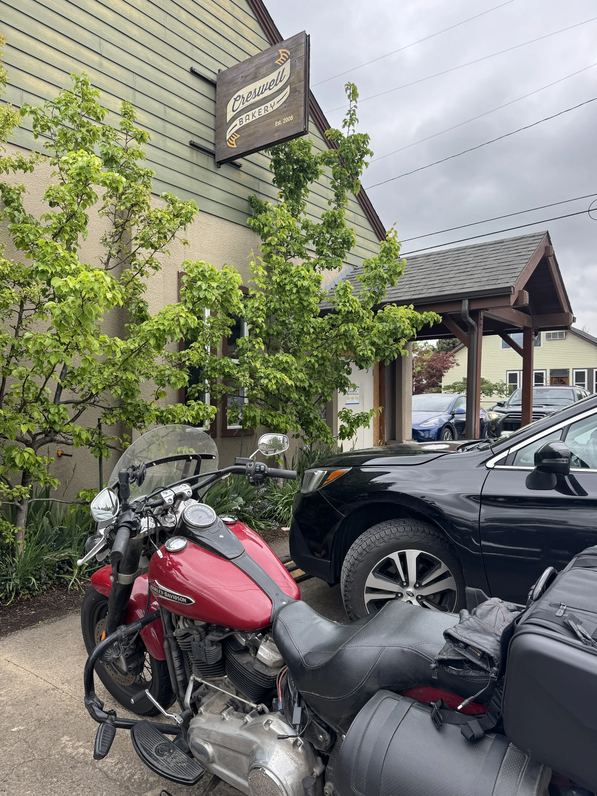 With the left side of my face still swollen, hot, and sore from oral surgery two days ago, I decided to keep today’s ride simple. Armed with antibiotics and ibuprofen, I headed south to the Creswell Bakery to stock up on bread.