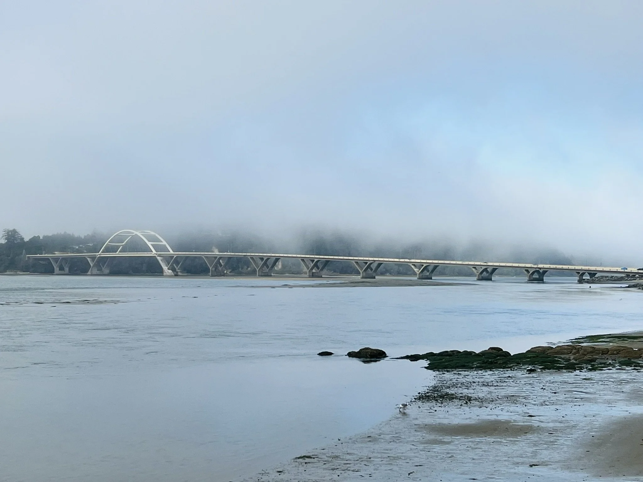 After gassing up I headed north on highway 101 to Yachats for lunch at Luna’s. Although views of the stunning Pacific Ocean were largely obscured by fog, I was still able to get some beautiful glimpses of soft sand beaches, rocky cliffs, and gently rolling waves.