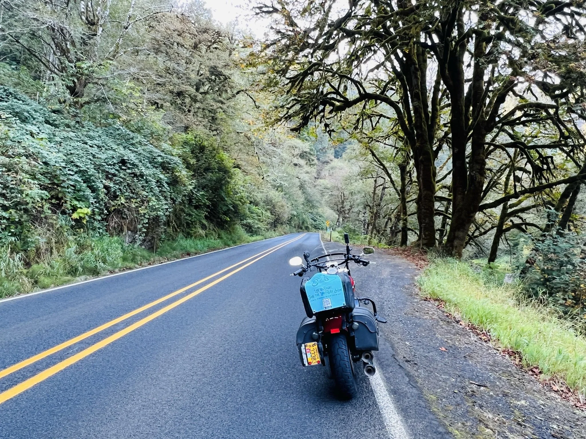 From Creswell, I enjoyed the twists and turns through the forest on Hamm Road before turning north on Territorial Highway towards Veneta and then west on highway 26. The air was crisp, and the trees were bursting with color. A multitude of red, yellow, and orange leaves danced on the road in front of me as I swooped past fields and then along the Siuslaw River to Florence.