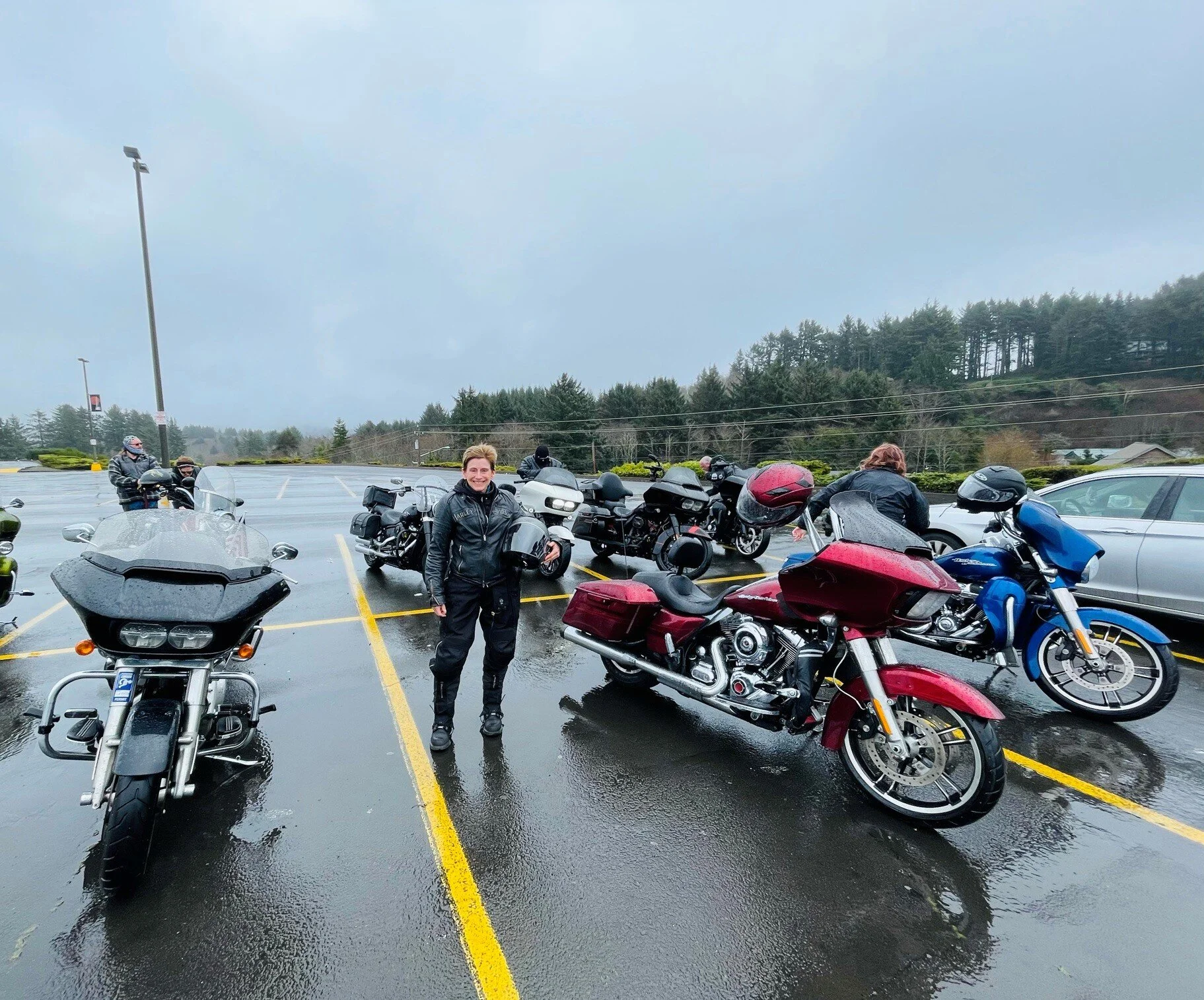 What an A plus day! Met up with Leo Guzman Fernandez and Pete Padron at Latus and headed over to Spirit Mountain Casino to join up with Tony Clawson, Chris Johnson and a few more of the Twisted Misfits to go to the coast. It was awesome to see everyone and to ride with so many wonderful people. The best part of the whole ride? Taking back roads the looong way home. Woohoo! After eating in Lincoln City we drove south on 101 to Newport Beach then east around Yaquina Bay on the Yaquina Bay Road. I just love swooping around those back roads with the bay on your right and the countryside on your left. We headed east on Highway 20 as we did on our previous trip. But this time we took Priest Road north near Wren to Kings Valley Highway (Highway 223), 99East through Monmouth, highway 22 through Eola, and then 99E through Canby. Even though it was raining most the day it was a glorious ride! Lots of curves, wide open spaces, farmlands, fields, pastures, rolling hills, and orchards. Every time we passed a sign for Interstate 5 and turned the other direction, I laughed with glee, feeling a little bit like a rebel. There’s no such thing as too much time on the bike!