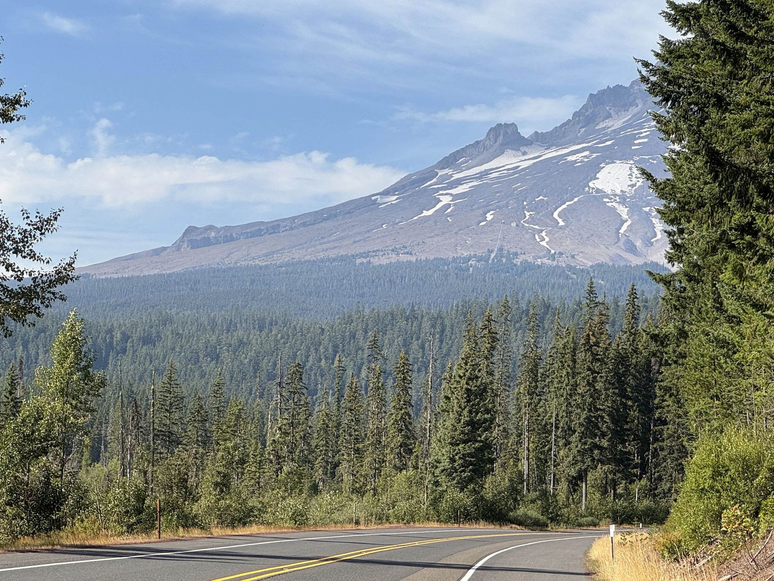 After exploring the lake, I headed north on highway 97 through Bend, Redmond, and Madras, taking in the Cascade Mountain Range through smoke covered haze to my left and yellow fields with grazing cattle to my right before descending into Government Camp.
