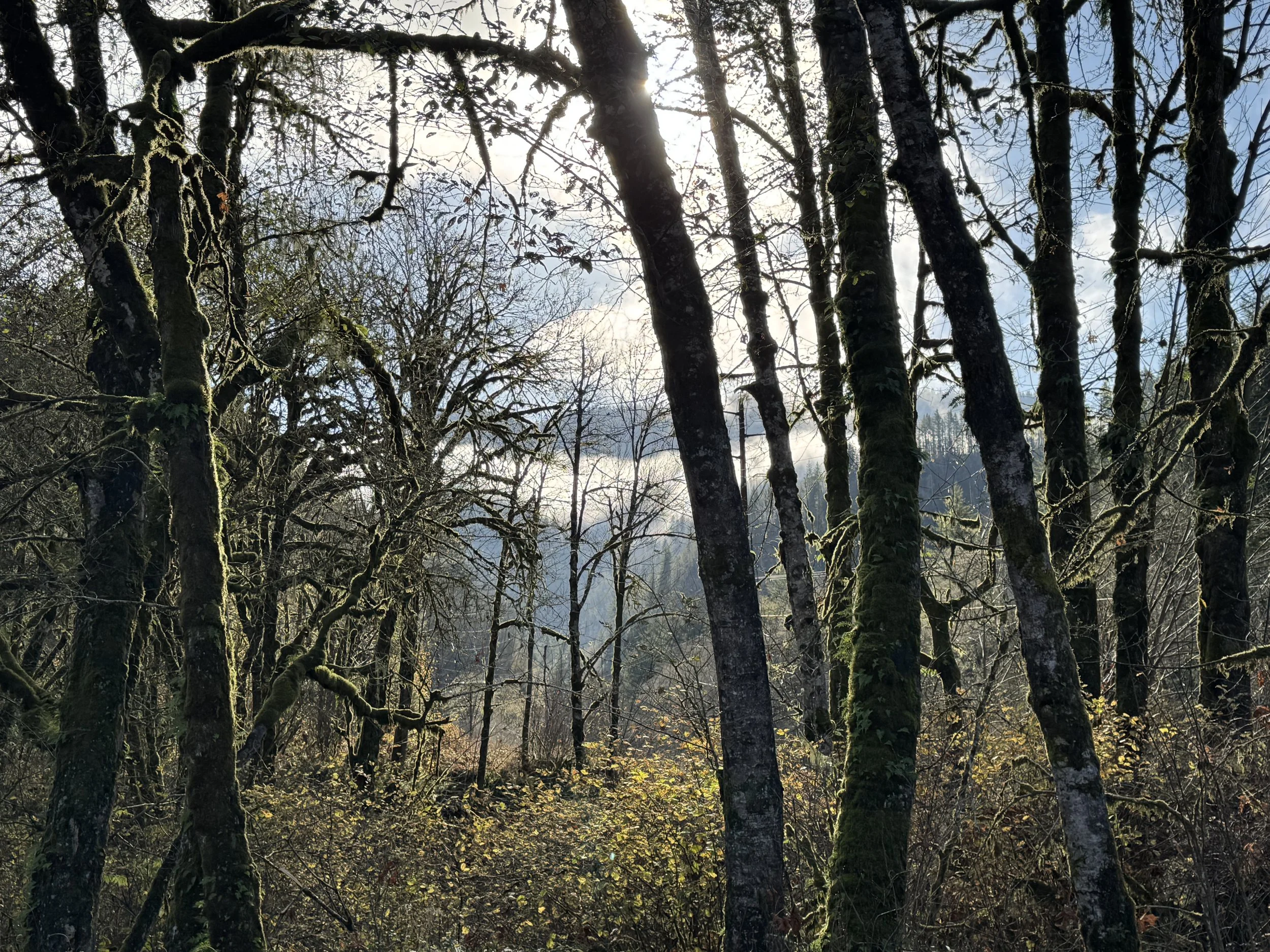 Breathing in the fresh earthy scent of the wet foliage and moss-covered branches, I took in numerous delightful glimpses of silvery, rippling river waters through the fog enshrouded trees lining the riverbanks while I navigated around cracks and potholes in the pavement.