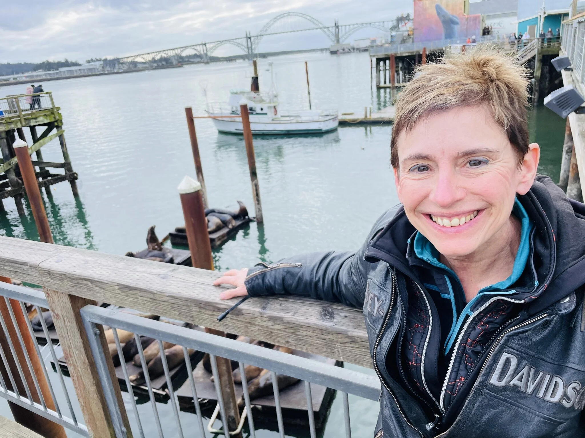 I truly never knew that life could be so good. Today was gloriously sunny and the coast was beckoning. Leo Guzman Fernandez, Grant Myers, and I took off for Newport and the Clearwater Restaurant on Yaquina Bay. What a treat! Between the stunning ocean views, homemade clam chowder, and curvy roads it was a day made in heaven. Leo led us West on 99E through Oregon City past the Willamette Falls. I am a sucker for waterfalls and no matter how many times I drive by this one I consider each time a special treat. It is amazing to me that one of the widest and most voluminous waterfalls in the country is just a few minutes from home. After passing the falls, we continued West to Highway 18 through McMinnville and over to the coast. We had been worried about ice on the pass and did see some on the side of the road near the summit. But we drove carefully and did not have any problems. After hitting the coast, we traveled south along highway 101 through Lincoln City and Depoe Bay to Newport. It was delightful to see the waves break, feel the clean ocean air, and swoop around the curves following the coastline. We were fortunate to get outdoor seating at the Clearwater Restaurant overlooking the Yaquina Bay. A large group of sea lions basking in the sun on the water below us serenaded us while we were eating. I ordered the homemade clam chowder made with clams, bacon, potato, and cream along with the beer battered fish and chips made with fresh cod. The food was absolutely delicious. I would recommend it to anyone. If I didn’t have to stay awake to drive the bike home, I would have gorged on their pumpkin cheesecake made with cashews, pumpkin, maple syrup, coconut milk, dates, dried figs, and candied pecans. The ride home east on highway 20 through Philomath to I-5 was also wonderful, particularly for the first stretch. Lots of curves and water views. Thanks, Leo for leading and Grant for being our weatherman and photographer.