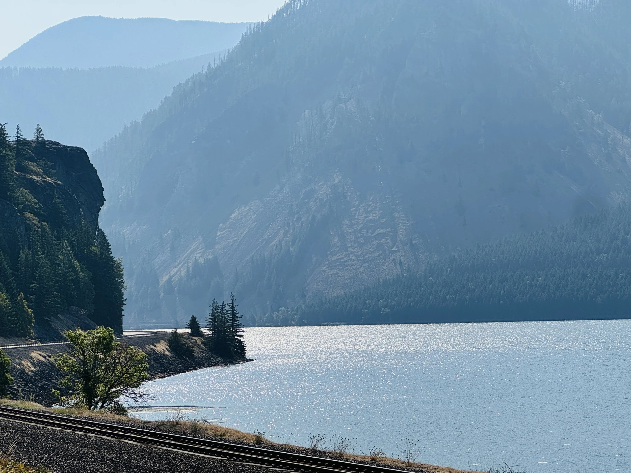 Heading out on highway 14 this morning, the air was crisp and cool, and fog was still hovering on the shores of the water. Tall rock basalt cliffs towered over me on my left and as the mist rose, I could see the sparkling blue waters of the Columbia River on my right, nestled between green rolling foothills and reaching far into the horizon under the bright blue sky.