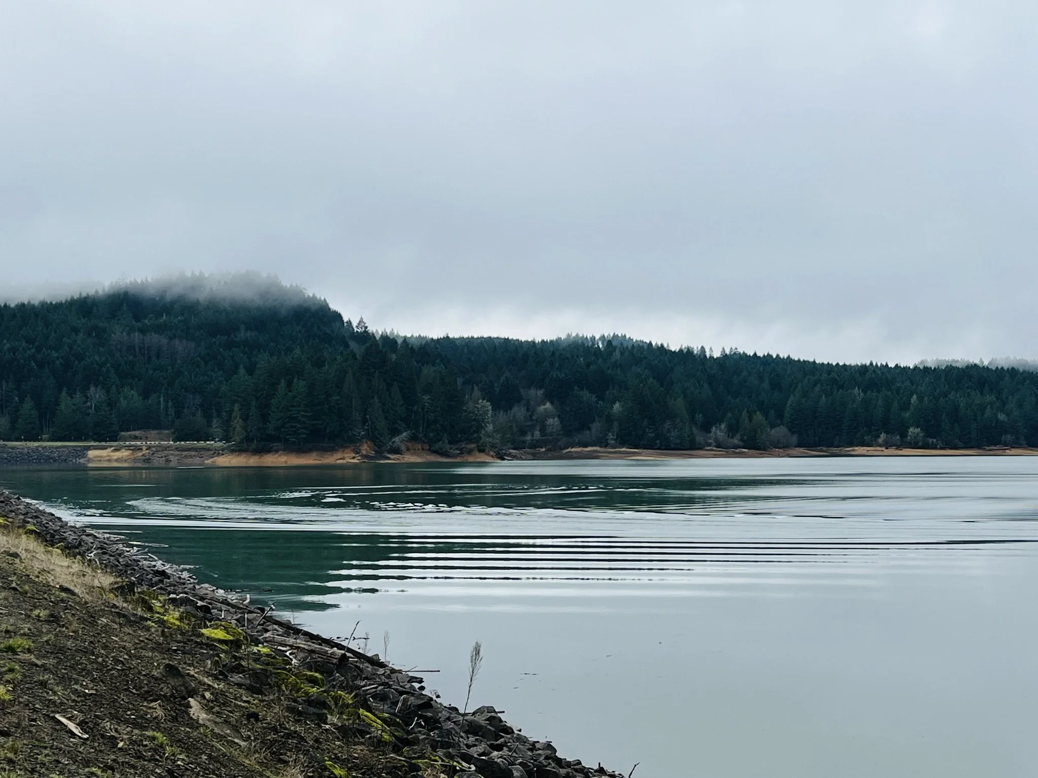 What a delight! Even though there was fog in the air and a mist settling in the forest around me, I could still see beautiful farmland and rolling hills as I headed west from Hillsboro to Scoggins Valley Road. Turning onto SW West Shore Drive, I drank in the view of the glass-like green gently rippling waters of Hagg Lake. Surrounded by colorful patches of rust colored dirt and wrapped in lush blanket of evergreen trees, the lake was both inviting and refreshing and a welcome respite from the hustle and bustle of the week.