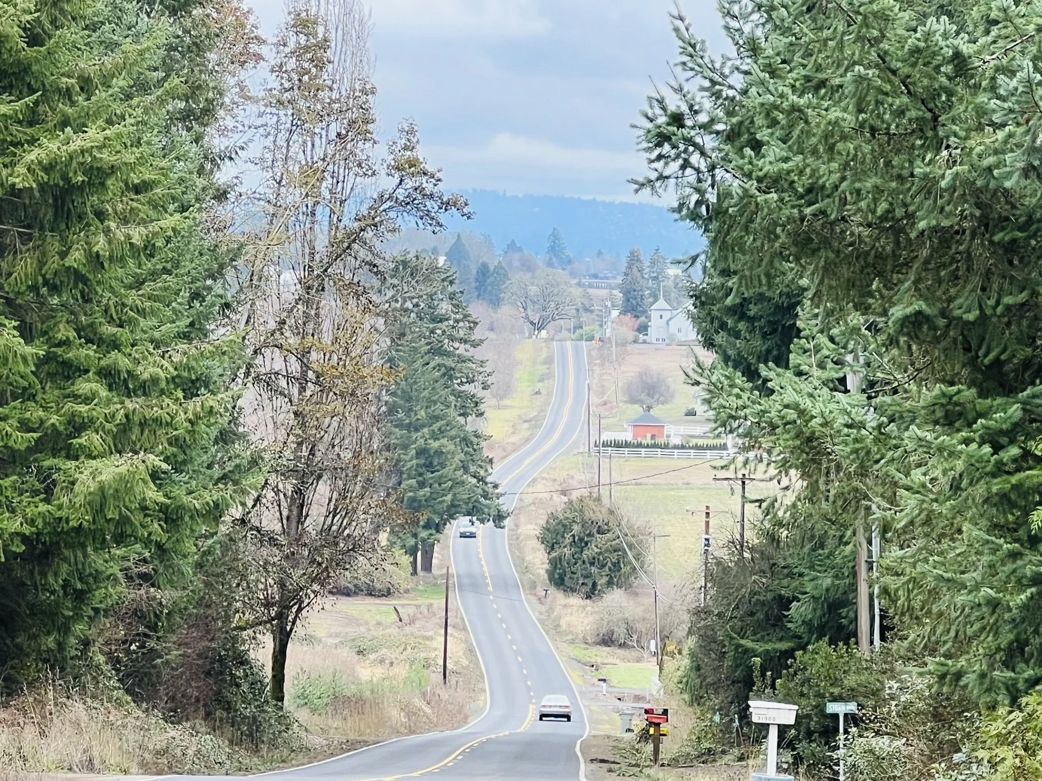 Heading back to Paradise to look at the Royal Enfield one more time I managed to find a delightful Valleys and Vineyards Scenic Drive that took me through the small town of Gaston and numerous local vineyards. As I rode up and down one hill after another and zig zagged my way up a variety of backroads heading east, I was treated to views of colorful orchards, meticulously organized rows of vines, clusters of Christmas tree farms, and a variety of farmhouses and country homes.
