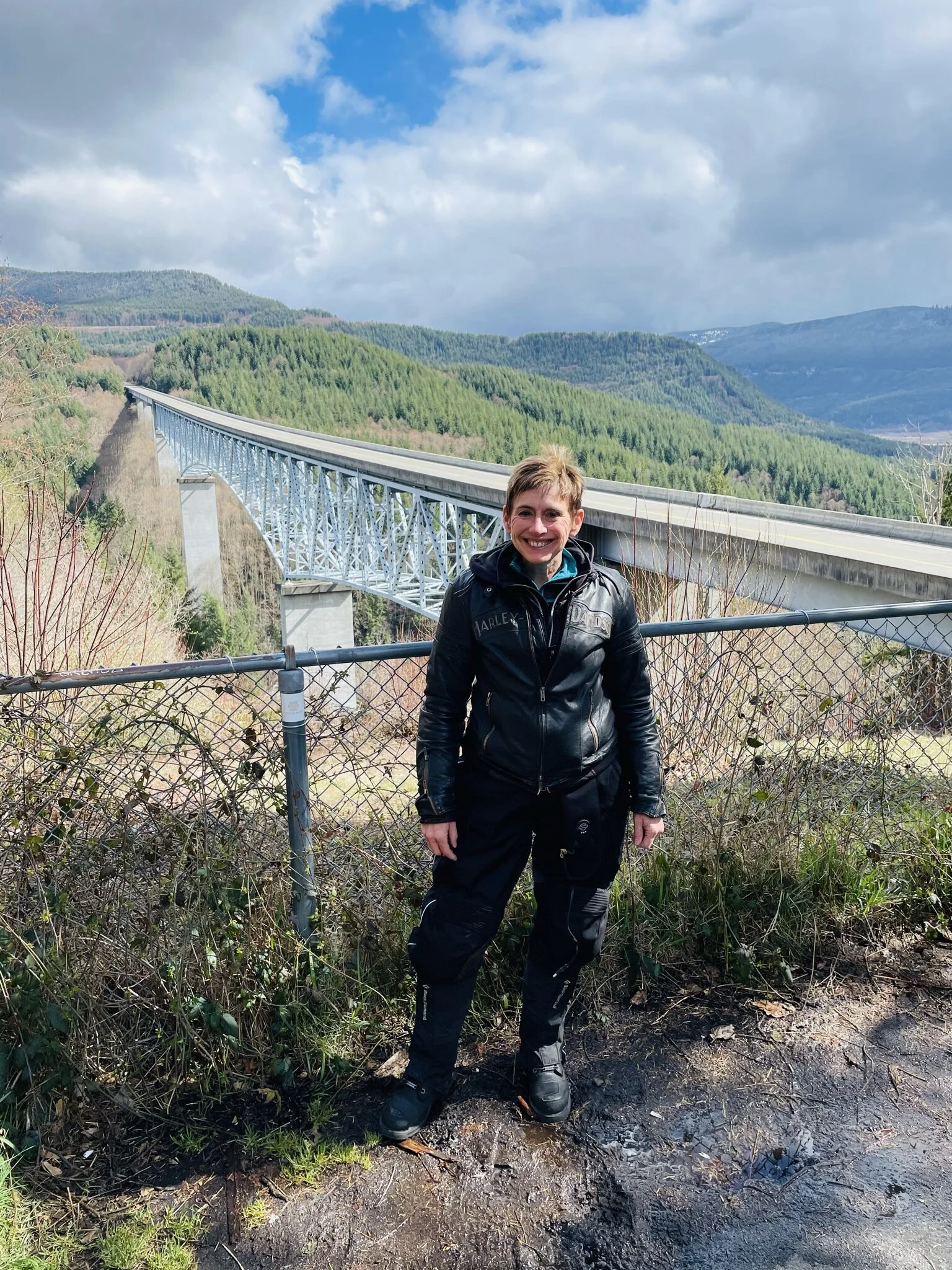 I stopped to take a picture at the Hoffstadt Creek Bride on the edge of the blast zone from Mt. St. Helens. The steel truss bridge is 2,340 feet long and 370 feet high and very geometric in design (see picture). What an adventure to cross this bridge as well as several others on my way towards the observatory. I made it past the Mt. St. Helens Forest Learning Center but not quite to the Johnston Ridge Observatory. Once the snow started covering the center of the road instead of the sides of the road and snowflakes appeared on my windshield I knew it was time to turn around. I feel so blessed to have such a great bike and to live in such a beautiful country.