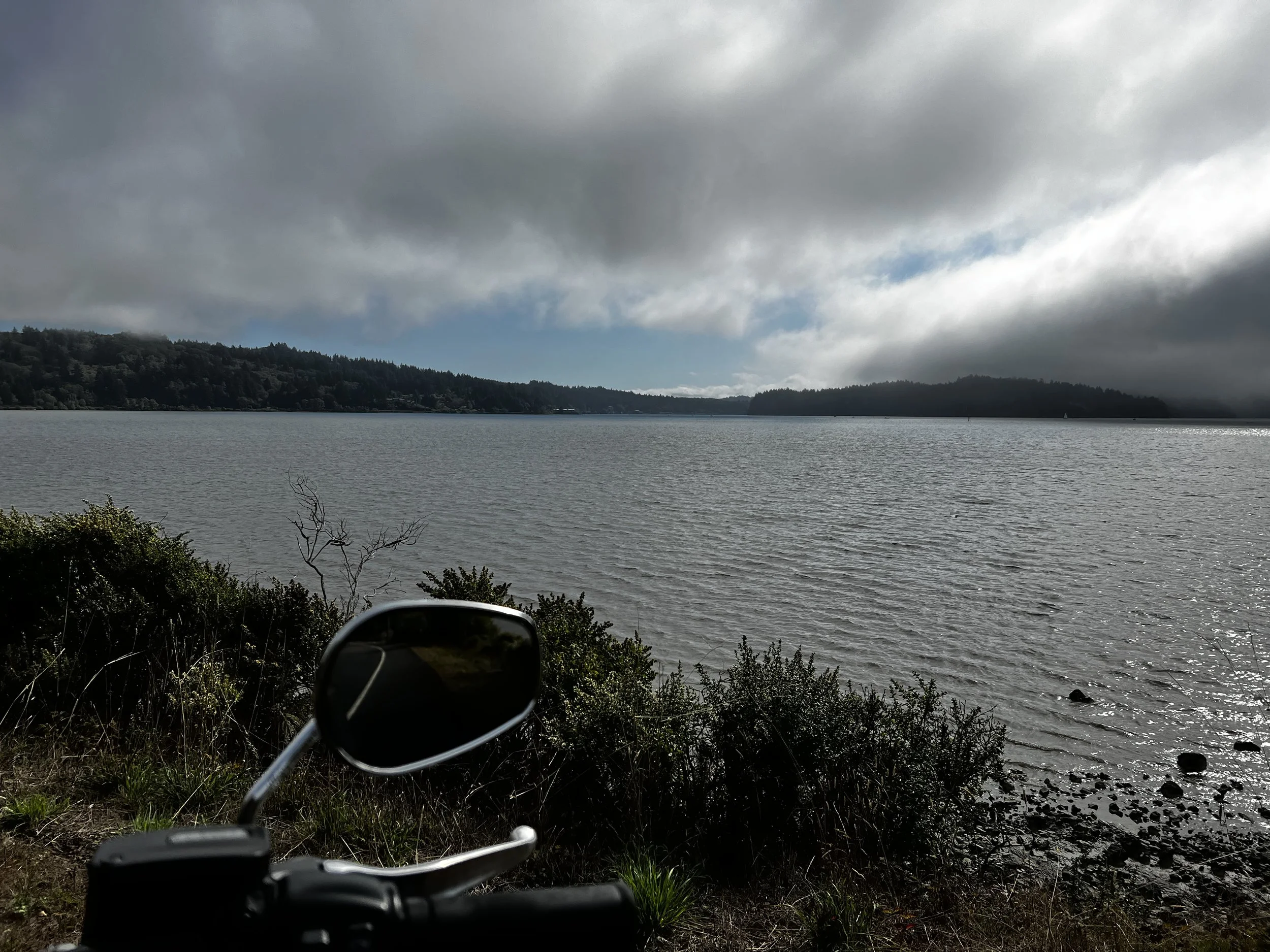 I stopped right out of town to admire the sand dunes and breathe in the cold crisp ocean air before heading north past Heceta Head Lighthouse and Yachats. To my left I could hear sea lions barking as they sunned themselves on the rocks in the aqua green colored water framed by the white mist hovering just above. I rose up and over the beautiful Alsea Bay Bridge as I made my way into Waldport, enjoying the ocean views with almost no crosswinds.