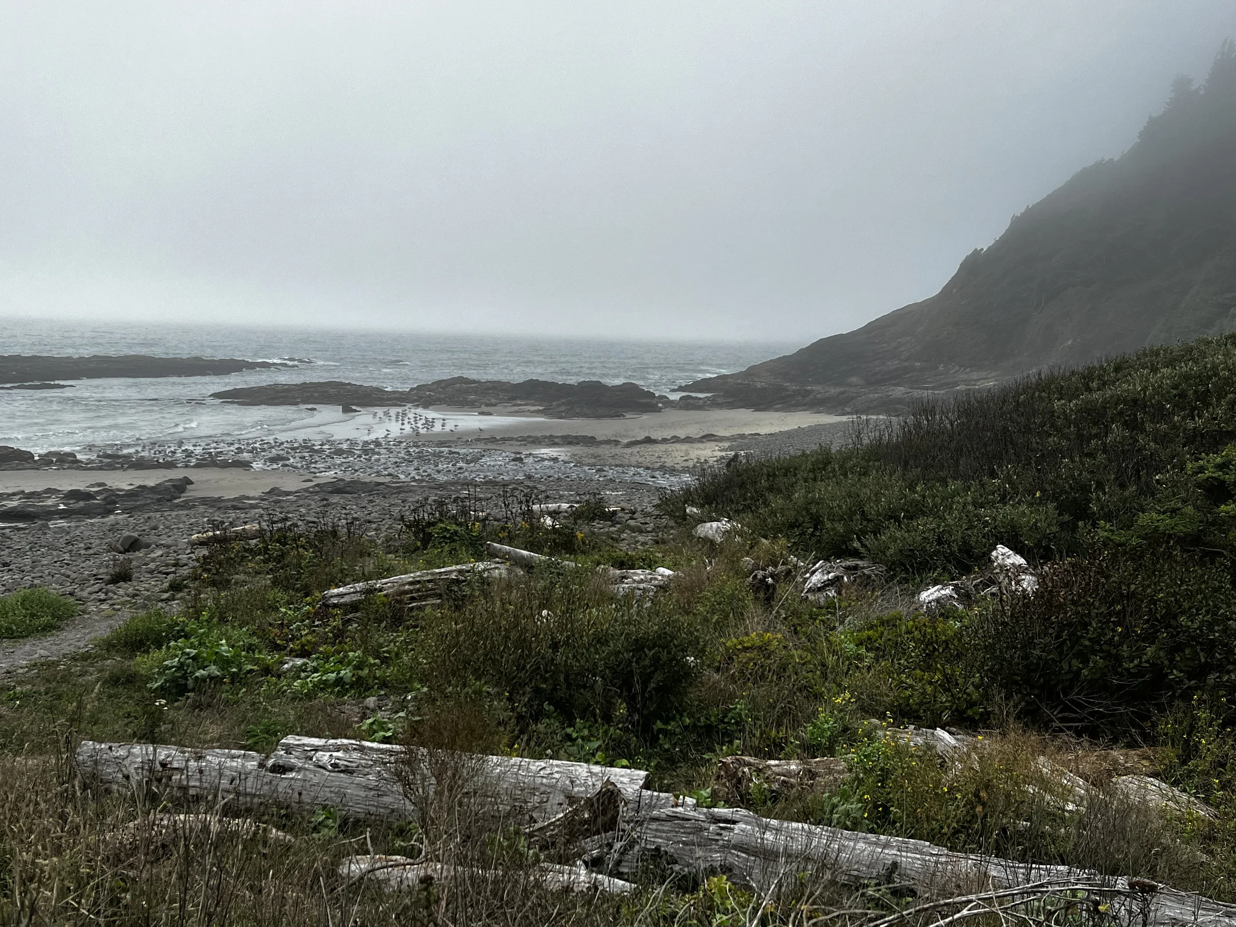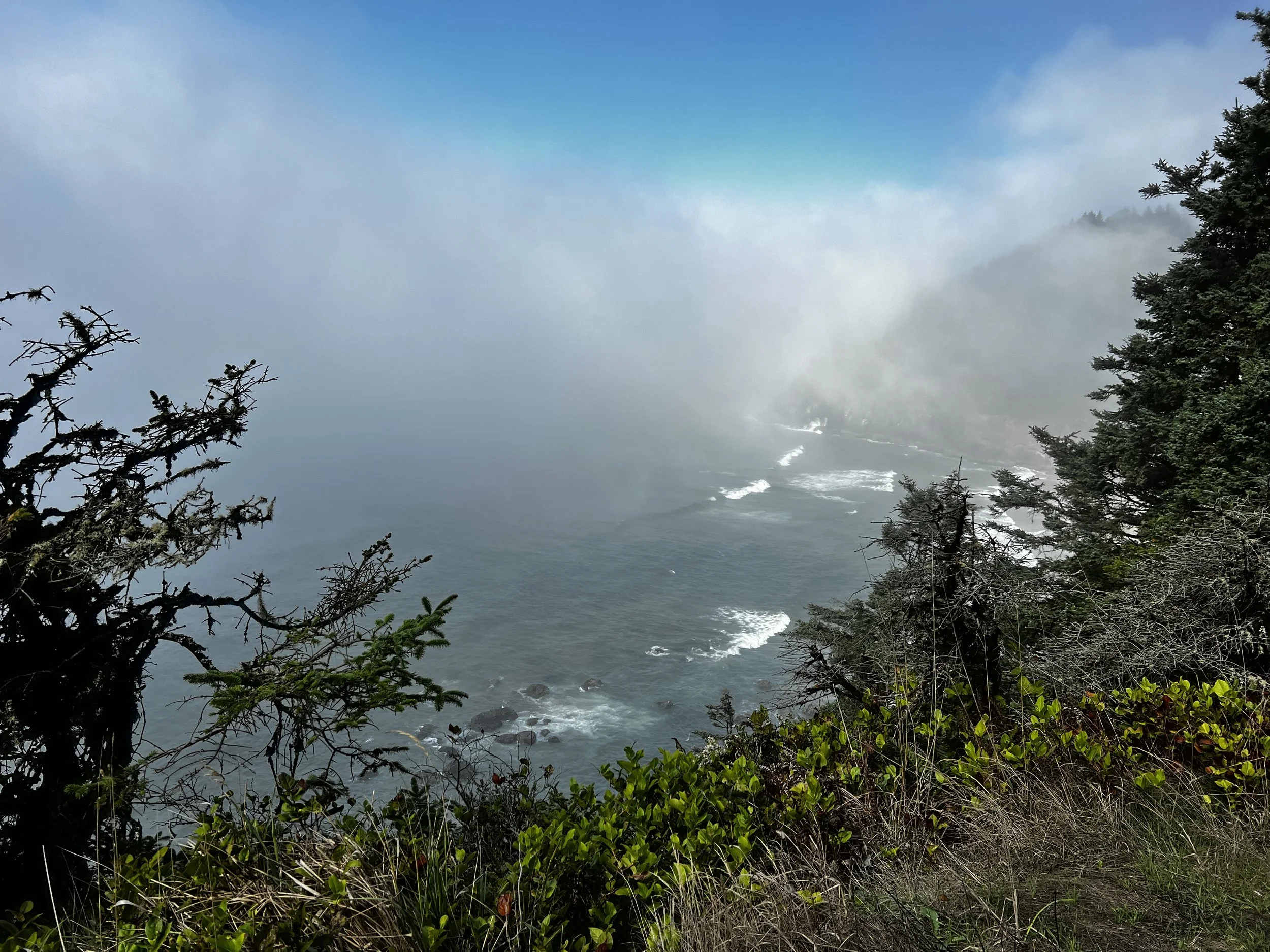 Bay and bridges, rivers, lakes, streams, and ocean waves – everywhere I looked today I found pops of color in the Pacific Ocean mist. The west coast was mostly fogged in as I traveled along the water from Florence to Newport. But that just made each errant ray of sunshine that much more glorious as I sped around one curve after another heading north.