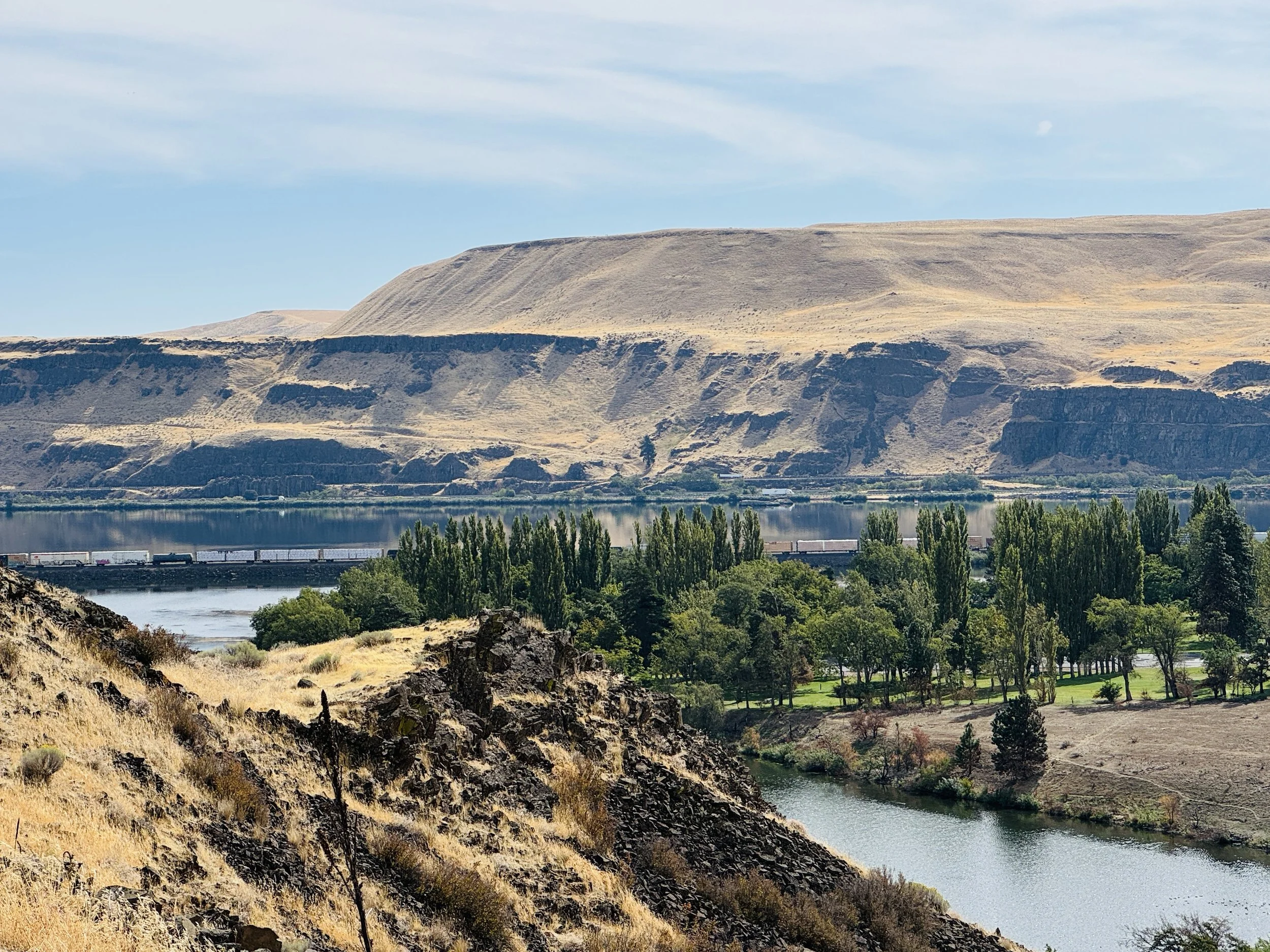 As I neared Goldendale, the grass around me turned yellow and the foothills varied shades of brown, with rippling layers of honey-colored plateaus and dark brown rocky cliffs rising to my left and right. Barreling through tunnels and riding alongside trains, I reflected on how fortunate I was to feel the sun on my back and the cool wind in my face.