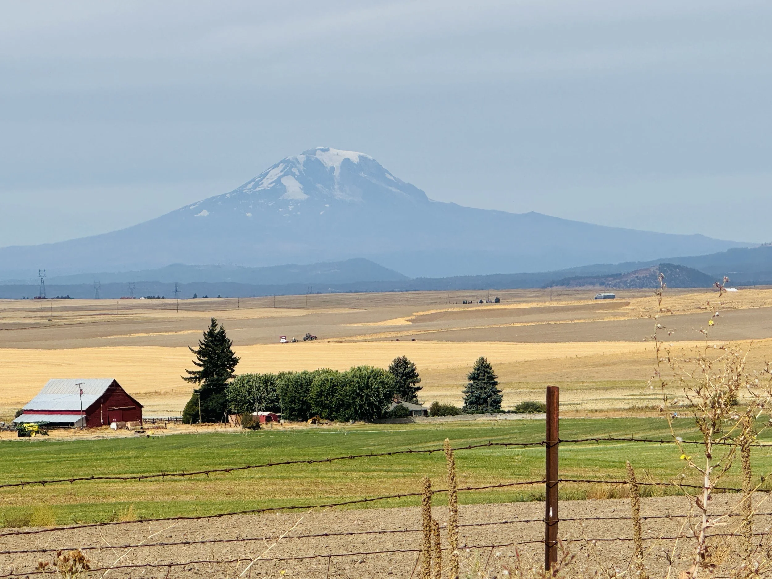 Turning north on highway 97, I headed into Goldendale, stopping to take a picture of Mount Adams in the distance, with green and brown fields in the foreground. Red barns and supply sheds dotted the patchwork quilt-colored farmlands and trucks bearing supplies headed into town.