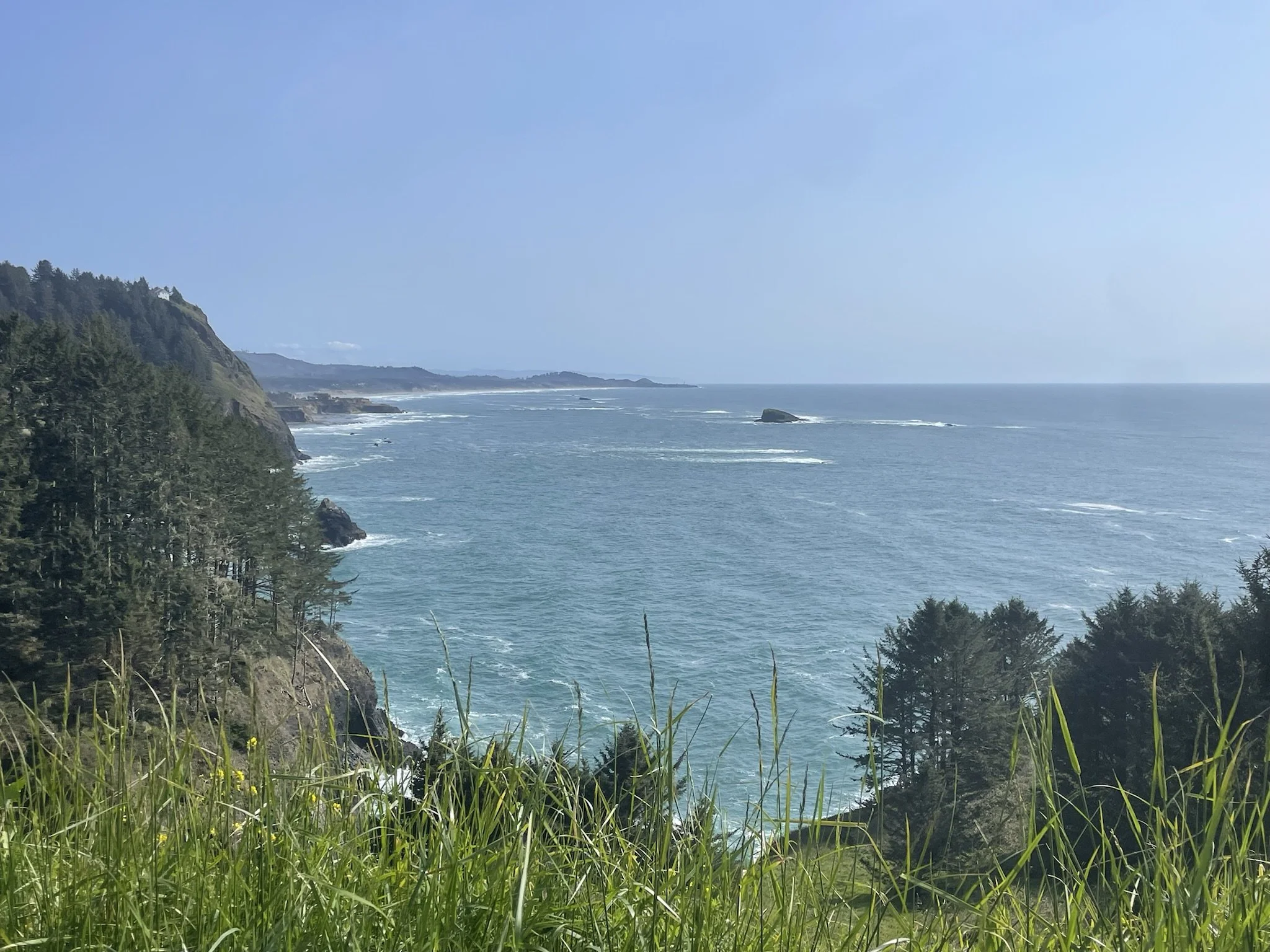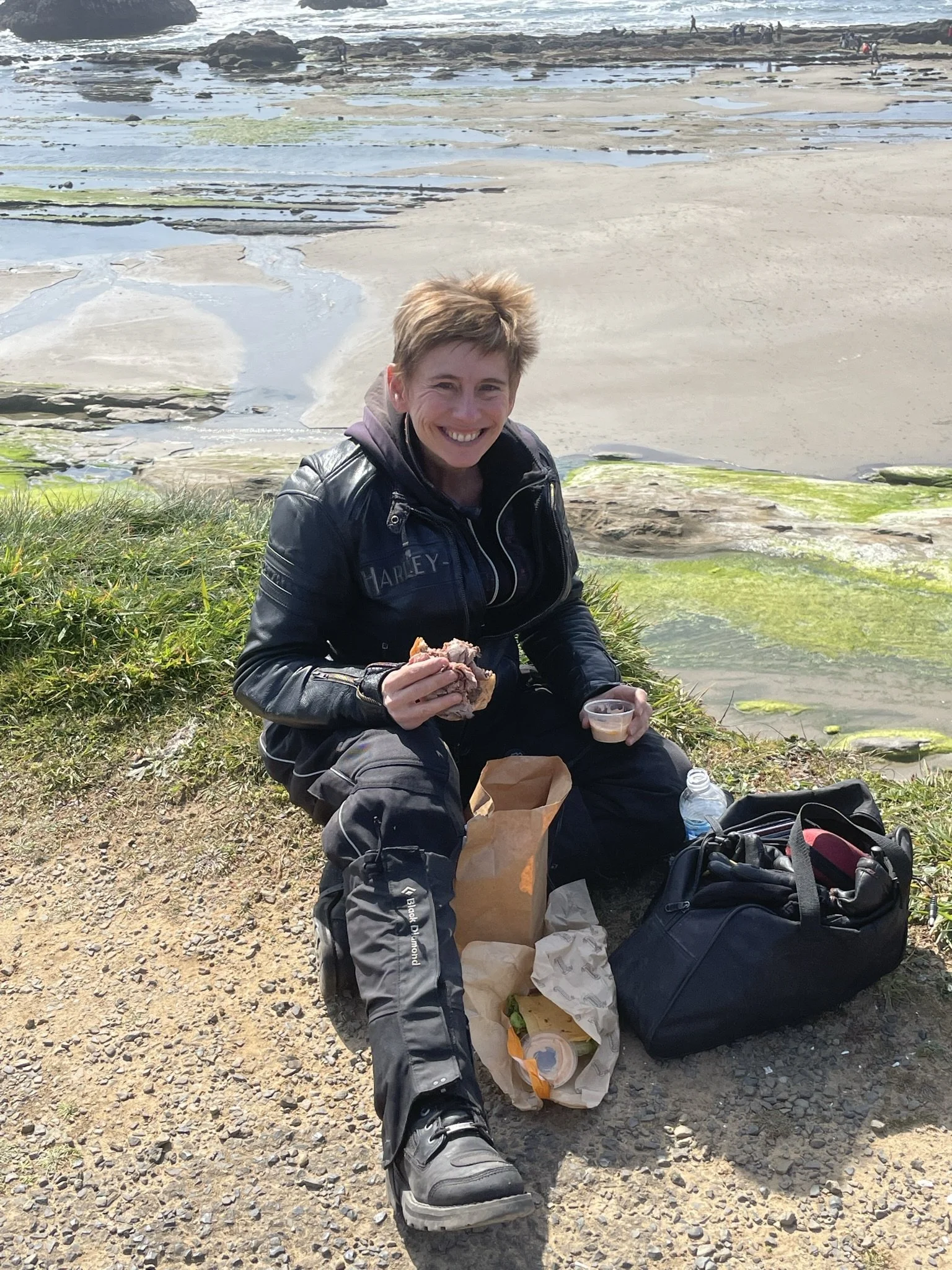 The last stop for the day was at Road End State Recreation Park where I followed the little footpath down to the beach and sat on a log admiring the view. I had saved the cheese and bread from my sandwich earlier and snacked on the last of these baked goods while I listened to the sound of the waves as the tide came in. It was also great to meet a couple friendly riders from the Salem Riders Group who said hello and shared some of the adventure stories.