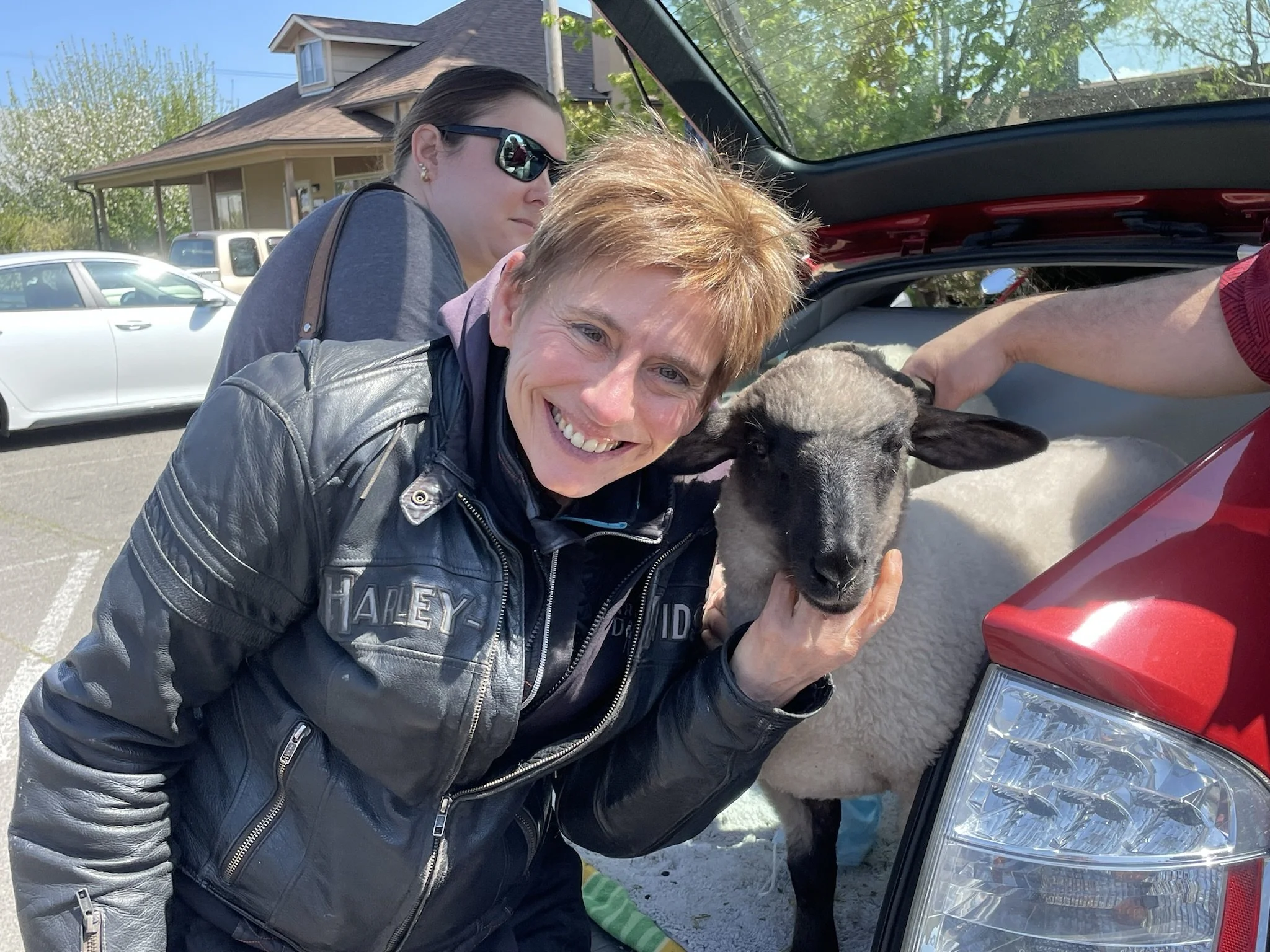 As I was savoring my food a Toyota Prius with two women pulled up and I heard what seemed to be the sound of sheep bleating. My curiosity got the better of me, so I walked behind their car and sure enough – there were two sheep in the back of their hatch! Apparently, the sheep had been abandoned by their mothers at birth and the women had nursed them back to health so they could be a source of wool for the ranch they belonged to. I befriended one of the two-month old sheep – his name was Fergus – before going on my way.