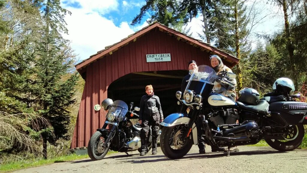 Got to go to the coast today with Doug Moore and Carol. Stopped at the Drift Creek covered bridge for some photos, ate lunch in Depot Bay on the ocean, and headed home. Got another covered bridge in on the way back. It was beautiful to be in the sun and cruising around the curves. Thanks Doug and Carol for the invite!